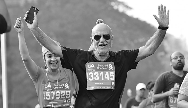 I started running in 2006 when I was 66. I was a brisk walker earlier. What prompted me to run was a slogan written on a T-shirt in a mall: ‘People who exercise just die healthier.’ Moreover, my youngest brother, who had run a couple of marathons in the UK, motivated me to take up running. Initially, the regimen became boring and taxing and I decided to call it off. But a chance meeting in Gurgaon with Melvin, a Reebok training team member, altered my life. After training with him for almost a year, I became confident and started taking part in half-marathons.
