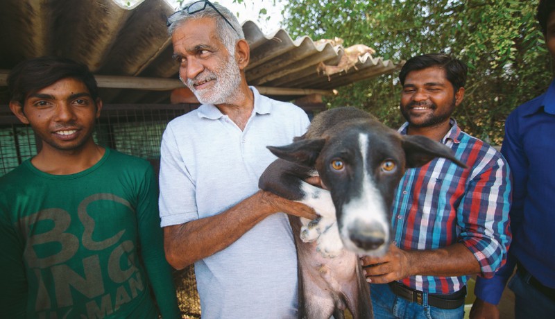 On a sultry morning, as a Maruti Eco van, which doubles up as an ambulance, nears a shelter for strays in Zundal near Ahmedabad, several dogs rush out, barking excitedly. The only one of its kind in India, this shelter is home to blind, disabled and paralytic dogs. Mahendrabhai Shrimali (centre), the brain behind it, puts you at ease, saying, “Don’t worry, they won’t bite you.” A former State Bank of India officer with a silver mop of hair and matching stubble, Shrimali is a father figure to the 40-odd residents of the shelter. Spread over 1.5 bigha of land donated by a farmer in 2014, the shelter is funded completely by the 65 year-old. He runs it with the help of a seven-member team, including a veterinary doctor. It was the sight of a grievously injured puppy that made Shrimali think of opening a shelter for disabled dogs. “Most strays sustain spinal injuries in violent street fights, often resulting in paralysis,” he says. Depending on the nature of their injury, these dogs are subjected to physiotherapy with a special massage oil that the team has perfected after trial and error. “We have been able to cure more than 25 paralytic dogs till now,” he beams. Once they are cured, the dogs are set free. Meanwhile, taking care of the brood doesn’t come easy; the shelter requires 30 litre of milk and 140 chapattis daily. Shrimali ensures that all expenses for food, lodging and treatment are met from his pension. “A passionate dog lover, Shrimali is completely hands on,” says Dr Nikhil Patel, a veterinary doctor on his team. “Irrespective of time and distance, he’s the first person to rush when a call for help comes.” Each entrant to the shelter gets a name: ‘Camel’ is so named after her hump and ‘Gandhi’ was found in Gandhinagar, while ‘Ambica’ came from Ambicanagar. Currently secretary of the Ahmedabad chapter of People for Animals, Shrimali is also associated with Ahmedabad Municipal Corporation’s animal birth control, sterilisation and vaccination programme. What’s more, he also takes up lawsuits pertaining to the mistreatment of dogs. “Legally, not even the civic body can relocate dogs,” he emphasises, while patting Camel on her hump.