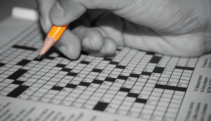 Next came a task that was even more demanding, if such a thing could be possible: filling in the light squares with words. The first time we sat down to it, we thought it would be a breeze, and started filling in the squares with a ballpoint pen, convinced it would be the work of 10 or 15 minutes at the most. After we had ruined the grid by overwriting the words dozens of times to make them fit and interlock with each other, we realised we had quite a job on our hands. We made a fresh photocopy of the grid, and this time with pencil in hand and an eraser nearby, we started again—filling in the words lightly and tentatively, only to have to continuously erase them and start over. It took hours because the symmetry of the grid is sacrosanct and has to be maintained no matter what. So the words have to be chopped and changed because the grid cannot be.