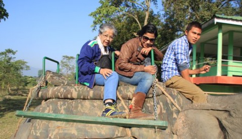 We set off for Pobitora, in Mayang in Assam, on the fourth day of our trip. The wildlife sanctuary is famous for the one-horned rhino. The drive is a short 15 km away on a dirt track. Although we were all ‘shook up’, the sight of ghostly trees emerging from the mist more than made up for the bone-rattling journey. How do you describe the feeling when a rhino looks straight at you and seems to ask, ‘What are you doing on my turf?’ And while our young guide appeared to be very comfortable in the presence of the tusker, it was heartening to know he carried a gun, just in case!