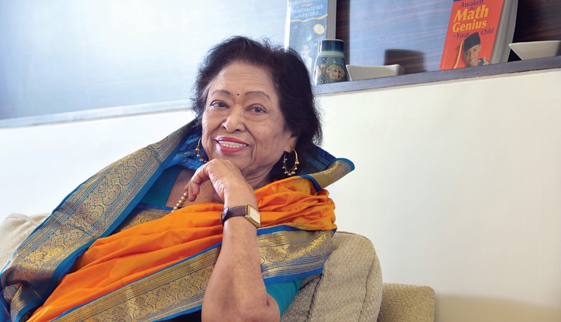 It is precisely this God-given gift that kept the fire burning in her kitchen; she was pushed to give public performances by her parents. Unfortunately, Devi’s inherent and intuitive skills with numbers were reduced to providing ‘numero-astrological’ solutions in the latter part of her life. Our interview at her apartment in Mumbai was interrupted intermittently by phone calls and the ringing of the door bell, people seeking an audience with her for quick fixes to mend bad relationships, finding better jobs, monetary gains and happiness. The living room, serving as a waiting room for clients, proudly displayed a framed photograph of her with Shah Rukh Khan and a shelf stacked with books authored by her, including Mathability: Awaken the Math Genius in Your Child, Puzzles to Puzzle You and In the Wonderland of Numbers, among others. It speaks volumes about Devi that, despite the growing line of consultation, not once did she get restless, posing patiently for our photo shoot. None of us knew then that it would be her last photo shoot and interview to the media. Two months later, curtains came down on a life that was a reminder of the infinite possibilities of the human brain.