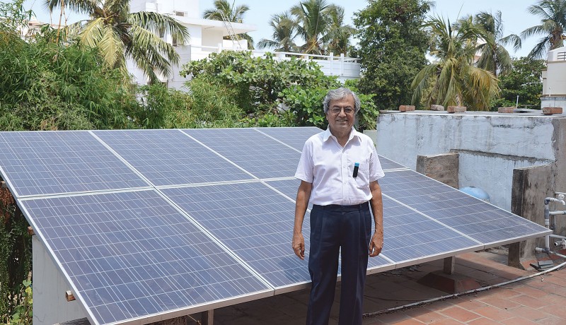 When Cyclone Vardah made landfall in December last year, the city of Chennai plunged into darkness and went without water and electricity for five days. Yet one home remained unaffected. At their home in Kilpauk, D Suresh and his wife had electricity and even surplus running water. Why, they had enough to even help their neighbours. “Our friends and neighbours were charging their cell phones and filling water at our home,” recalls the 73 year-old.