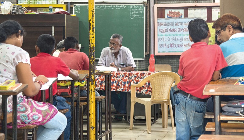 Spreading cheer on a rain-soaked morning, 30-odd students are participating animatedly in discussions with teachers while taking down notes in a room tucked amid deserted shanties in Adarshnagar, a sprawling slum in Ahmedabad. This is not just a classroom, mind you, but an entire school. Welcome to Helpline Education Home, which trains children to sit for their Class 10 board exams when they turn 17. Jostling for space along with teachers and students in the room are big iron cupboards, a TV set, piles of books and files, water containers and utensils in which food for students is cooked. Run by 56 year-old Mahesh Desai, who owns a jeans manufacturing business in Ahmedabad, Helpline Education Home began as a morning school in 2000. “Initially, I lured children and parents with old clothes collected from nearby societies,” he shares. However, once the gifts stopped, children dropped out. “Getting the kids to enroll is a Herculean task as they earn over ₹ 250 to ₹ 300 a day if they beg in upscale areas,” points out Desai, who has so far taken over a thousand children under his wings. The school’s faculty comprises five teachers. “I have been with this school since five years,” says principal Gayatri Joshi. “I suppose it’s going to be a lifelong association.” Some children trained here have done exceptionally well like Chintan Vijaybhai Patni, who is currently pursuing higher studies at a leading Ahmedabad college. “Chintan wants to become a judge and we are all working hard to make his dream come true,” says Desai. Hailing from Talegaon in Maharashtra, Desai believes Ahmedabad, where he lives with his wife, is his karmabhoomi. “We have been able to ignite the minds of these children and convince them to continue with us,” he says. “Now my dream is to set up a gurukul.”